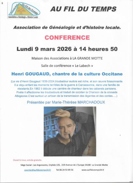 La prochaine conférence aura lieu le Lundi 9 Mars 2026 sur Henri GOUGAUD Chantre de la culture Occitane