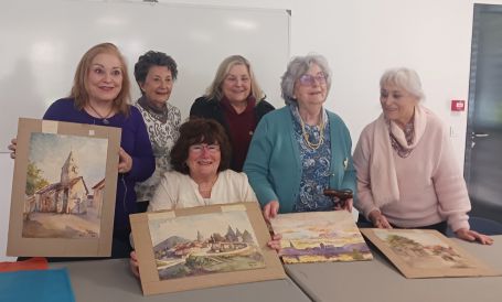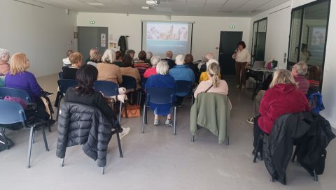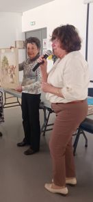 La conférence de Marie-josée GUIGOU a eut un grand succès et nous a réservée de bonnes surprises avec la présence des nieces de Marguerite HUETTER et la fille du jardinier de Mme COMBIER madame ALIBERT née CAUMONT qui a apporter des tableaux du peintre que la conférencière émue ne connaissait pas